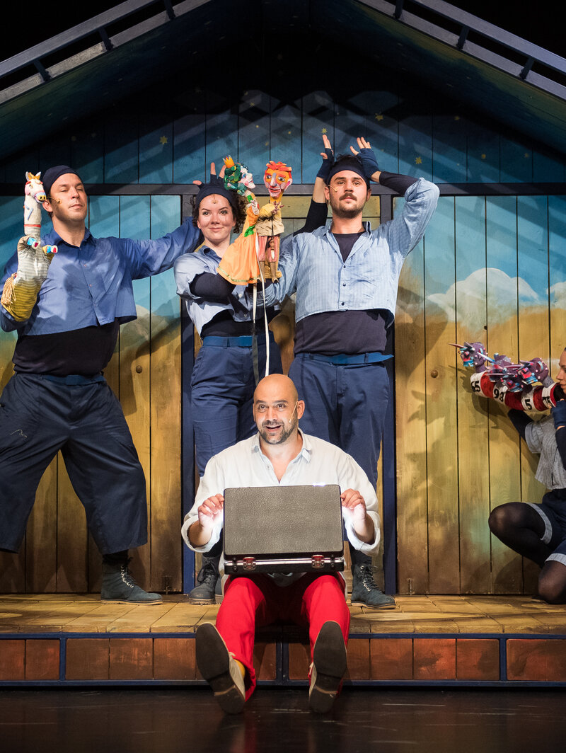 Vásári forgatag kesztyűsbábokkal, mozgásszínházi elemekkel, nép- és elektronikus zenével, fénnyel, földdel, vízzel, levegővel és rengeteg humorral, a magyar népmesekincs egyik kevéssé ismert, de rendkívül mozgalmas darabja nyomán.